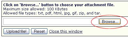 A window will pop up. If a window doesn't pop up, check to make sure that your pop up blocker in your browser isn't blocking it. Click on the browse button in this window to browse your local computer