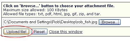 After you click Open, it will take you back to the upload window. Now that you've selected the picture, you can click on 'Upload File!' to actually load your picture up on to the calfishing.com server.