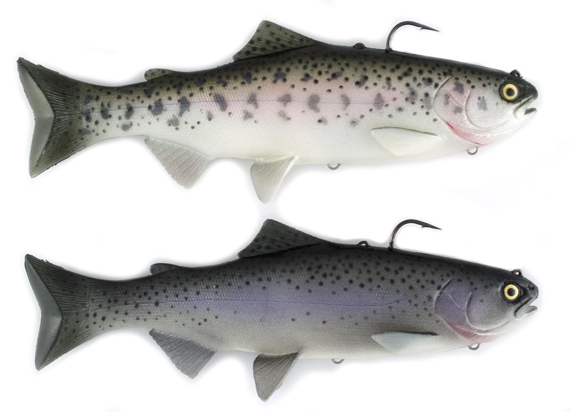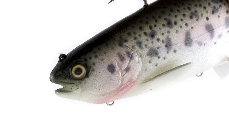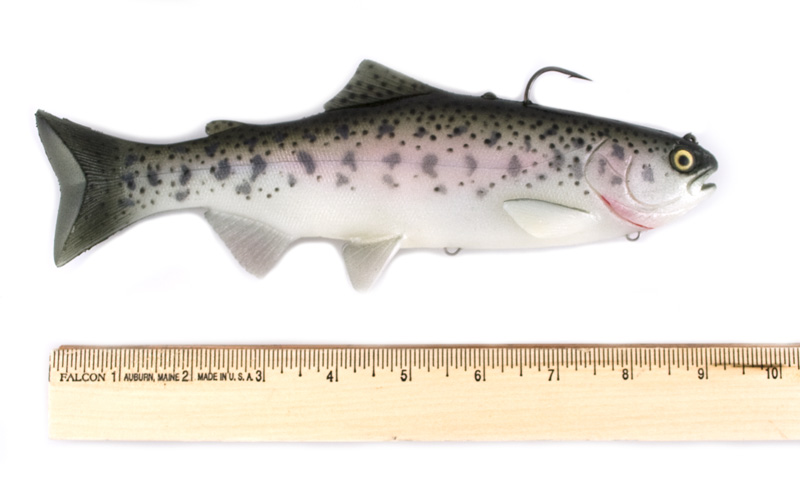Overview/History: The BaitSmith Magnum trout released in early 2009. This 9.5 inch bait weighs 6oz and comes in 3 trout imitating colors. The rate of fall is advertised as being 1.5 feet per second, and - to use the Huddleston nomenclature and convert to real on the water experience - I'll just tell you it's like an ROF18. The top hook looks like a Mustad UltraPoint - nice and sharp. Retail price on the Magnum Trout is around $40. Pros: It's just like a Huddleston only bigger? Somebody is going to accuse me of being too direct, but that's the BaitSmith Magnum Trout in a nutshell. Ever since the Hudd came out, I'd been wanting a bigger one and the Magnum trout fits the bill well in this regard. It's longer, heavier, and sinks faster. Those three attributes appeal to me as a fisherman who frequents deep clear-water lakes. You can fire this bait in to 40' of water, get it down there and really fish it at depth. The action is more subtle than a Hudd, due to slightly tougher plastic, and less "play" in the tail section of the lure. The tail kick looks good (but not amazing) on the swim. One thing that is nice though is the fin movement. On a medium to fast retrieve, the fins start to vibrate. It's similar to what you'll see with a 10" Castaic Platinum trout on a fast retrieve. I love this added secondary action on any bait. Looks outstanding. Another differentiator with the Magnum Trout is the addition of two wire loops to hold hooks in front of the tail fin and behind the dorsal fin. The location of the hook holders is just right, and it obviates the need to run wire or similar trap rigs. I put an Owner Hyperwire split ring and a #2 Gamakatsu 4x strong hook on both belly loops and go to town. I'm a big fan of convenience. Straightness of swim and durability are two of the most important factors in any $40 soft bait and the BaitSmith didn't let me down. On a reasonable retrieve my two Magnum Trout swam well. Not perfect dead on money, but good. And after fishing both baits for a few months and getting them snagged a few times each - they both look like new. You should get 10-30 fish per bait without issue. BaitSmith as a company is strong on the production side. The color patterns are accurate in terms of trout representation. They don't have the glossy look that a brand new Hudd has (yum) but in the water they look right. The Dark Trout pattern with its purple overtones is particularly appealing to me. It reminds of the purple 'Nitro Express' MS Slammer color that has always been a good producer. Cons: With the price of a Hudd dropping to $25, the $40 price tag on this bait looks a little less appealing. I'm not saying its not worth it to have a larger hudd-like option in your arsenal, but the price will probably discourage some people. My only other issue with the Magnum trout is the fickle-ness of the swim when the lure is loaded up with hooks. I found that the position of a single small treble hook could cause my bait to run on its side a little. Being fanatical about how my lures swim, this bothered me. Most people wouldn't even notice the difference in the swim but I obsess about these things and tend to find the subtle faults . This problem nagged me with the 6" BaitSmith as well. The bait swims good on one cast, then a little off on the next cast. Watch your baits carefully and tell me in a review comment if you agree or not. My review of the Magnum Trout is more critical than for other lures, but with the strong similarities between this lure and the Hudd, you have to hold the bait to the same standards and ask if its really worth the money to have a larger heavier lure. The fish will make that determination over time. Overall this bait should be a big fish catcher. I haven't heard a lot of feedback on it, but I think we'll hear more about big bass and stripers getting caught on the Magnum in the future.
