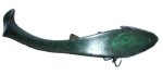 Another interesting feature on this bait is the bottom fins. The bottom fins are intentionally colored more darkly than the rest of the lure to help mask the hooks. If you look at the bottom and side pictures of the 9" lure above, you'll notice the hook really blends into the fins making it more difficult for the bass to see. And since most of us like to use stinger hooks on baits like this, the bait has a second set of fins to mask the stinger hook. It's really a pretty clever setup.