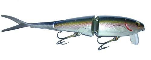 Overview/History: The Rago Top Trout was released in 2004 and is available in two sizes, a 7” and a 9”. These are composite baits and are fairly light for their size with the 7” weighing in at 2.5oz and the 9” weighing 3.5oz. The baits come stock with VMC hooks and are available in about 8 to 10 different colors. Pros: When you look at the Top Trout, it looks like a wake bait. The bill is almost at a 90 degree angle to the bait and the body has a very round overall shape. The interesting thing is that the bait’s natural action is not on the surface, but just below the surface. On a medium/slow retrieve the bait will run just under the surface with a gentle swishing side to side action. On a fast retrieve, the wobble will get wider and it starts to look more like the Rago Rat action wise. The Fin-S Fish tail will whip back and forth harder the faster you retrieve it. When you’re fishing it fast, the bait will dive down to 3-4 feet max on a long cast, or you can hold the rod tip up and keep it in very close to the surface if you like. It’s a fishy action, and an interesting depth range for a hardbait. The construction on the Top Trout is solid and the paint jobs are fairly durable, on par with any of the other Rago composite baits. It’s the usual scenario where if you don’t mind a few scratches you can fish the bait as is, or if you’d like to preserve the finish you can coat over it with some Aristocrat or Devcon 2 Epoxy. The Top Trout casts well on standard swimbait tackle and it’s the type of bait that is definitely easy to fish with. It’s not going to get fouled on the cast very often or tumble when casting into the wind. The best word I can think to describe the bait is approachable. It’s something you can pick up and just start chuckin. Cons: There’s nothing specific I can think of that is a real negative about this bait. The hooks are VMC's so you should sharpen or replace them. You might also want to carry a spare tail or two in the event that it gets chewed up or nipped off. To give your bait different actions, you could try substituting the tail with a swimbait tail or a MS Slammer type tail. There’s some good customization options there if you like to tinker. Overall the bait is just a solid performer… It’s easy to fish, has decent action and a nice variety of paint jobs. I don’t think the Top Trout will ever light the world on fire but it should definitely catch some fish.As far as I know, this lure is no longer in production.