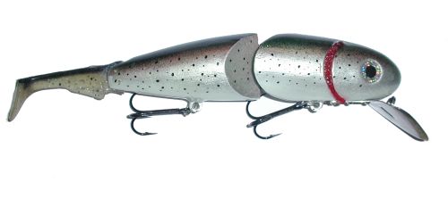 The SLO Trout as the name implies is made in San Luis Obispo, CA by Mark Hinson. The bait was debuted in early 2004 and comes in two sizes, 9.5" and 11". It's a wood hardbait, with a metal bill and let me tell you this is one BIG bait. It's girthy like nobody's business. This is a hand made bait made one at a time.